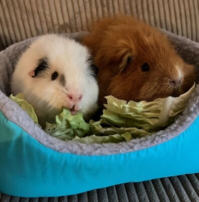 Wir sind 2 Meerschweinchen Jungs im Alter von 2,5 Jahre. Wir sind zusammen aufgewachsen und leben seit wir klein sind bei unserer lieben Besitzerin. Wir haben ein sehr schönes offenes Gehege und sind gewohnt viel frisches Futter zu erhalten. Wir sind gesund und munter, noch unkastriert und recht groß. Aus persönlichen Gründen suchen wir ein neues Zuhause und freuen uns euch bald kennenzulernen.